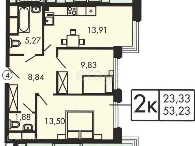 Общая площадь 53.23 м2