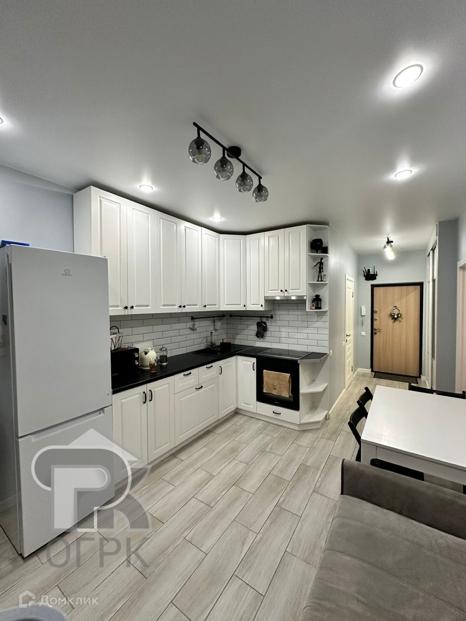 Кухня-гостиная в этой квартире является настоящей жемчужиной – она просторная и стильная, занимая около 20 квадратных метров.