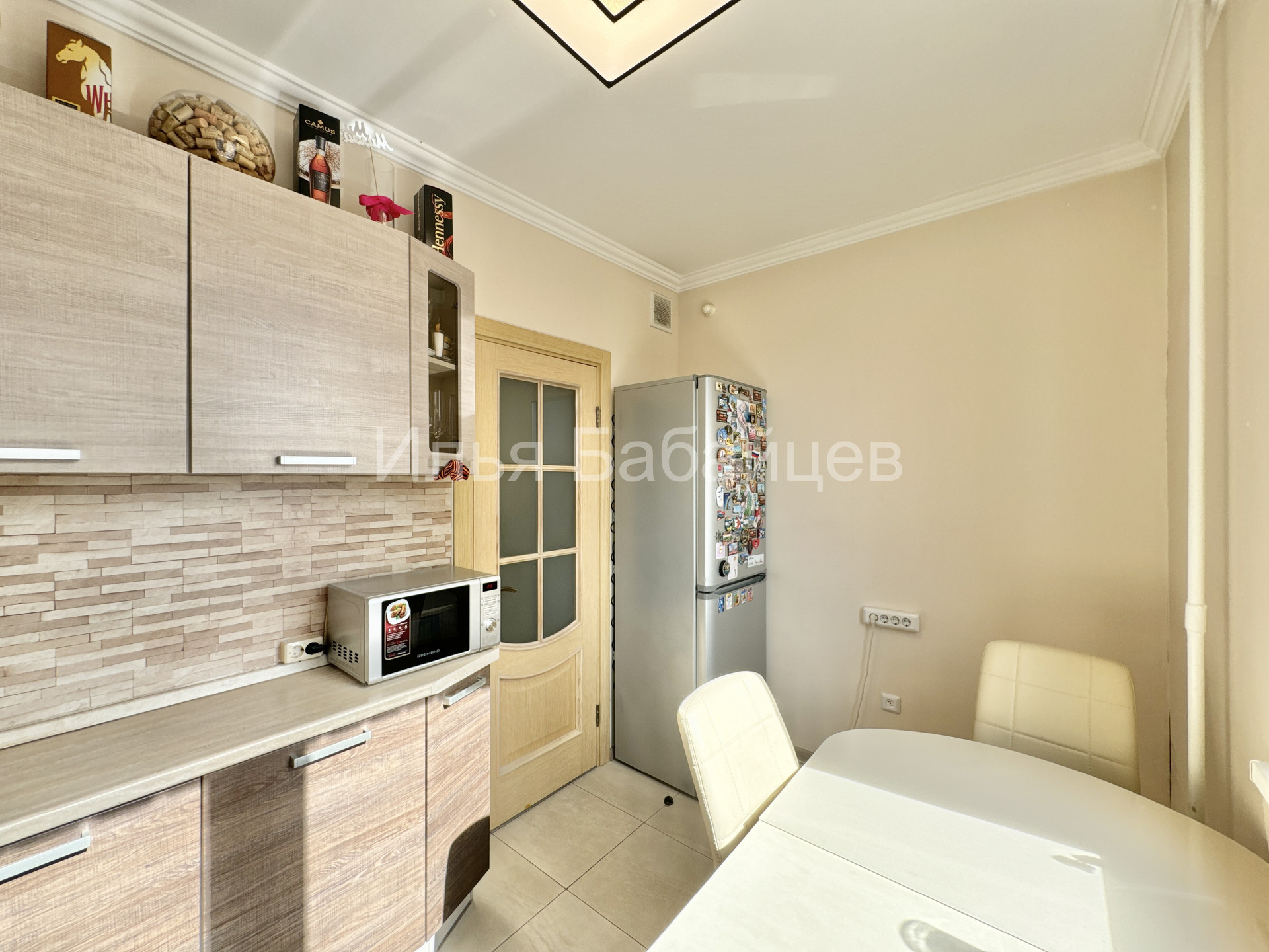 Функциональная кухня 7.5 м2 оборудована всей необходимой мебелью и бытовой техникой, включая посудомоечную машину. В просторной спальне имеется выход на лоджию. Установлен кондиционер. Окна кухни и спальни выходят на солнечную, южную сторону, из окон открывается красивый вид на зеленый парк Рассказовка. Вся мебель и техника остается потенциальному покупателю.