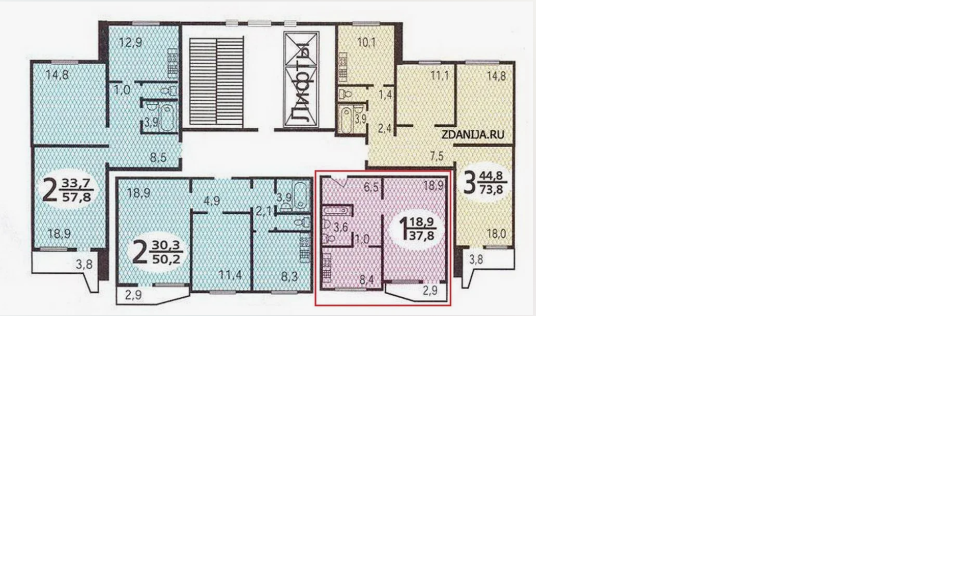 Общая площадь 37.8 м2