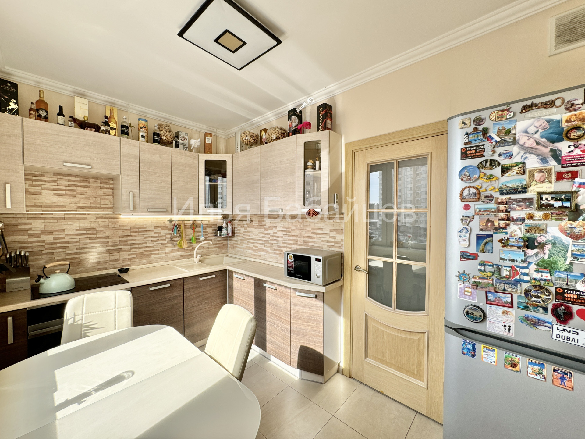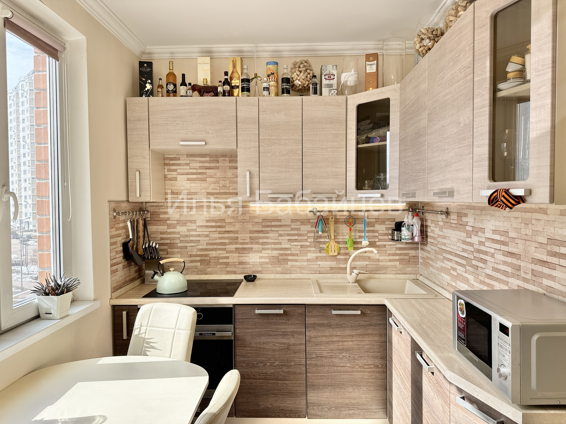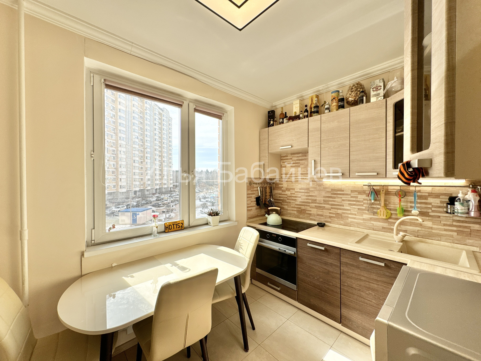 Функциональная кухня 7.5 м2 оборудована всей необходимой мебелью и бытовой техникой, включая посудомоечную машину. В просторной спальне имеется выход на лоджию. Установлен кондиционер. Окна кухни и спальни выходят на солнечную, южную сторону, из окон открывается красивый вид на зеленый парк Рассказовка. Вся мебель и техника остается потенциальному покупателю.