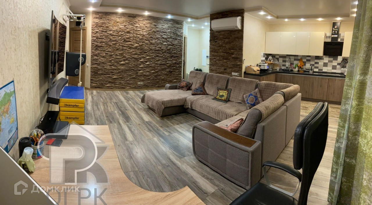 Две изолированные комнаты, гостинная совмещена с кухней, гардеробная.