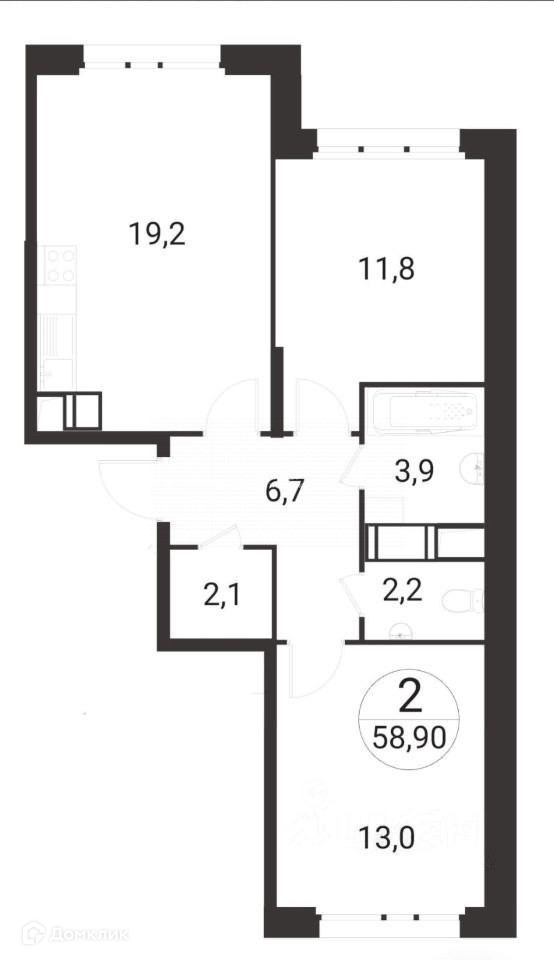 Арт. 65516738 ЕВРО 3-к квартира площадью 59 м2 с большой кухней-гостиной – 19,2 м2, в шаговой доступности от ст. м. Рассказовка и МЦД-4 (ст. Мичуринец), в современном ЖК "Переделкино Ближнее".