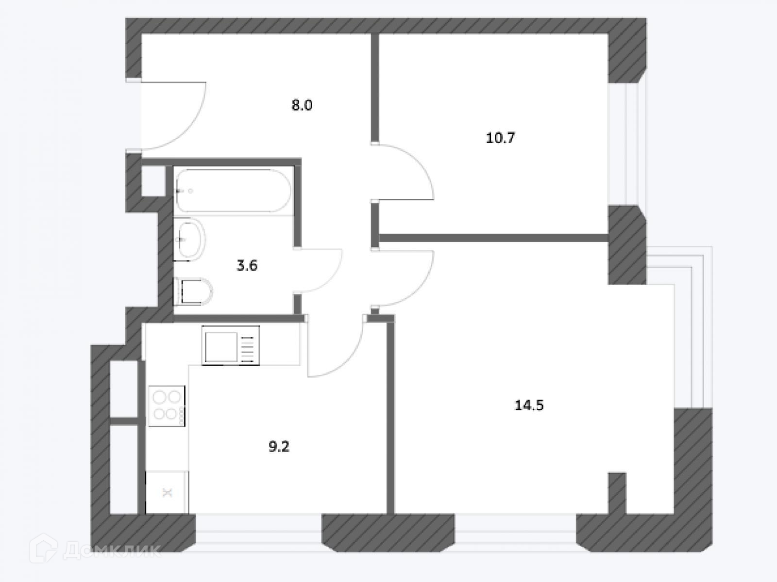 Жилая площадь 25.2 м2