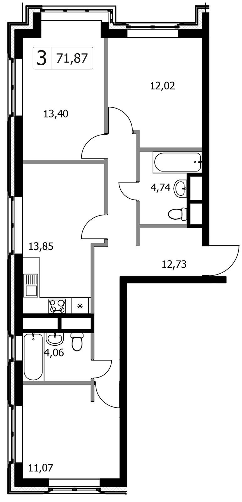 Количество комнат 3