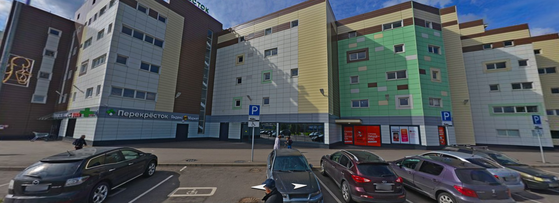 На 1 этаже паркинга расположены магазины, в том числе большой "Перекресток", очень удобно заходить за покупками после того как припарковали машину.
