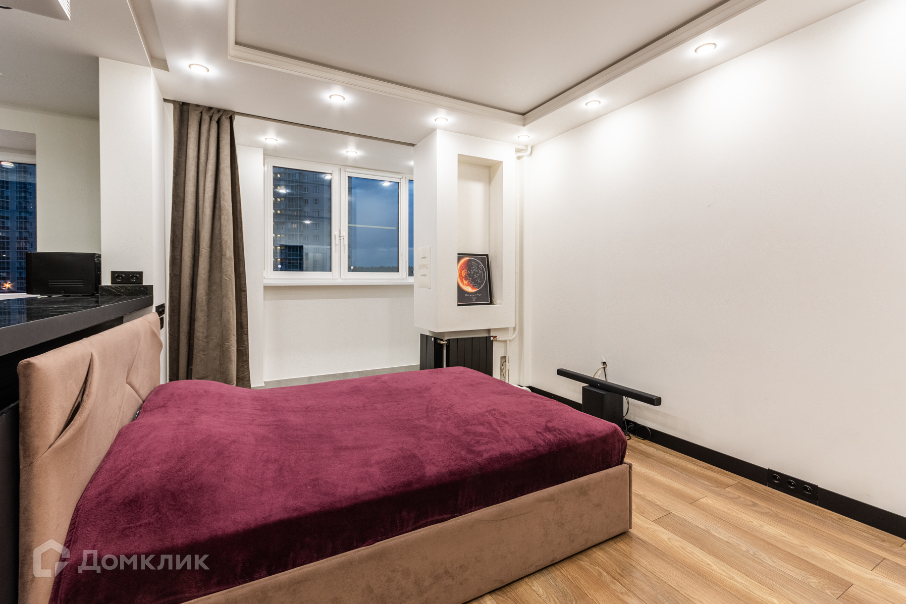 • Утеплённая лоджия объединена со спальней. Проведено освещение