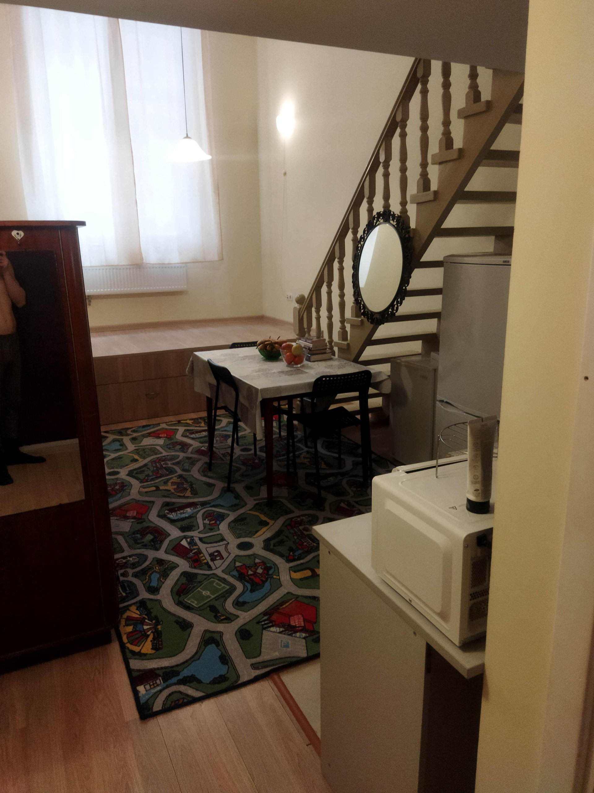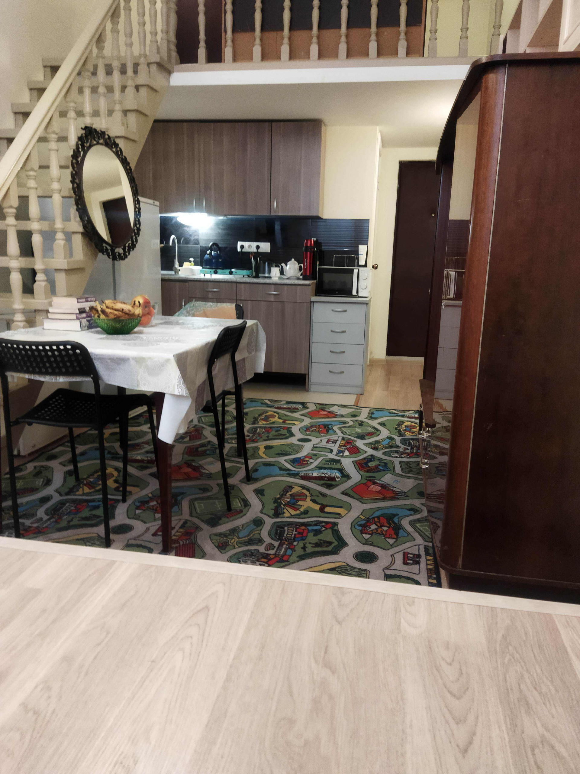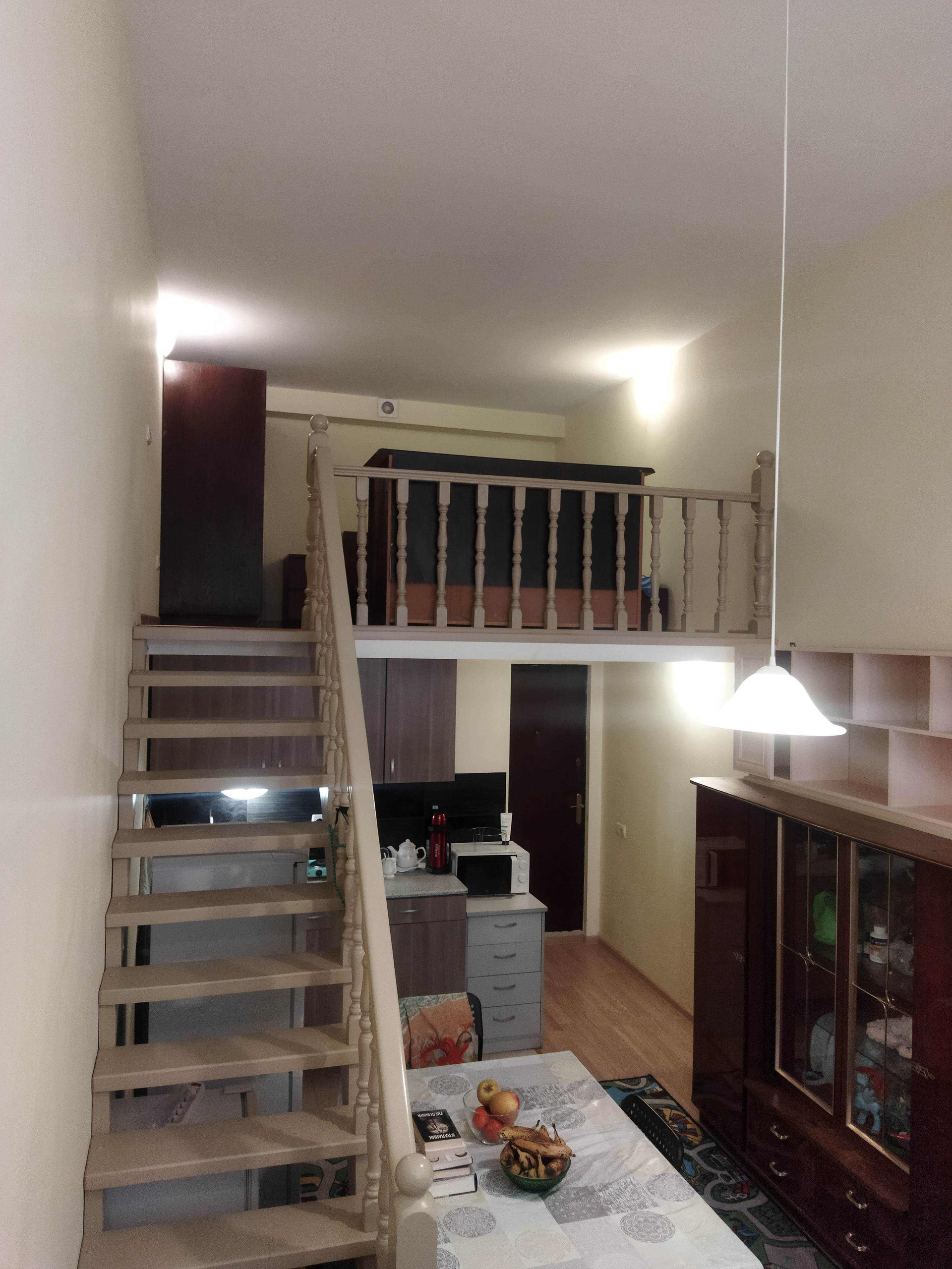 первый этаж 25 метров (санузел, кухня, гостиная, гардероб, рабочее место) и 8 метров второй этаж (спальня, гардероб, рабочее место). в идеале лучше связываться по мессенджерам девятьшестьодин 338 нольтритриноль. для свежего воздуха в квартире три вытяжки: на кухне, в спальне, в санузле.