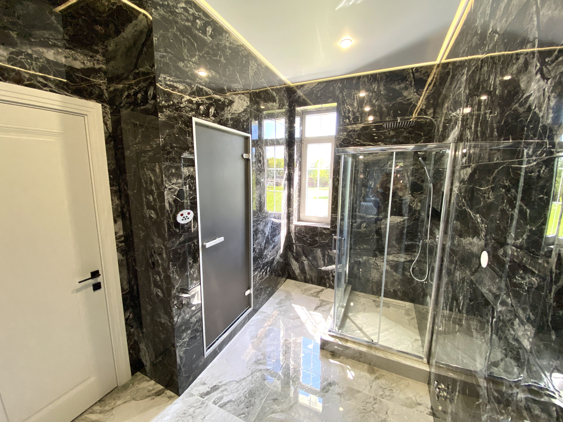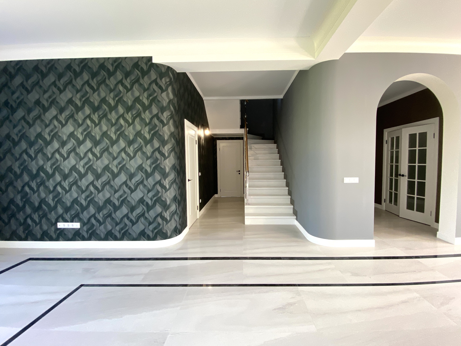 На 1 этаже расположились просторная прихожая, кухня-гостиная, гостевая комната, общий санузел, турецкий хамам, подсобное помещение, котельная и отапливаемый гараж.