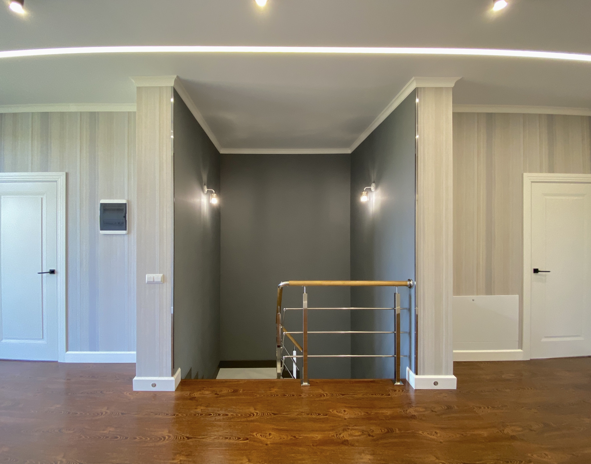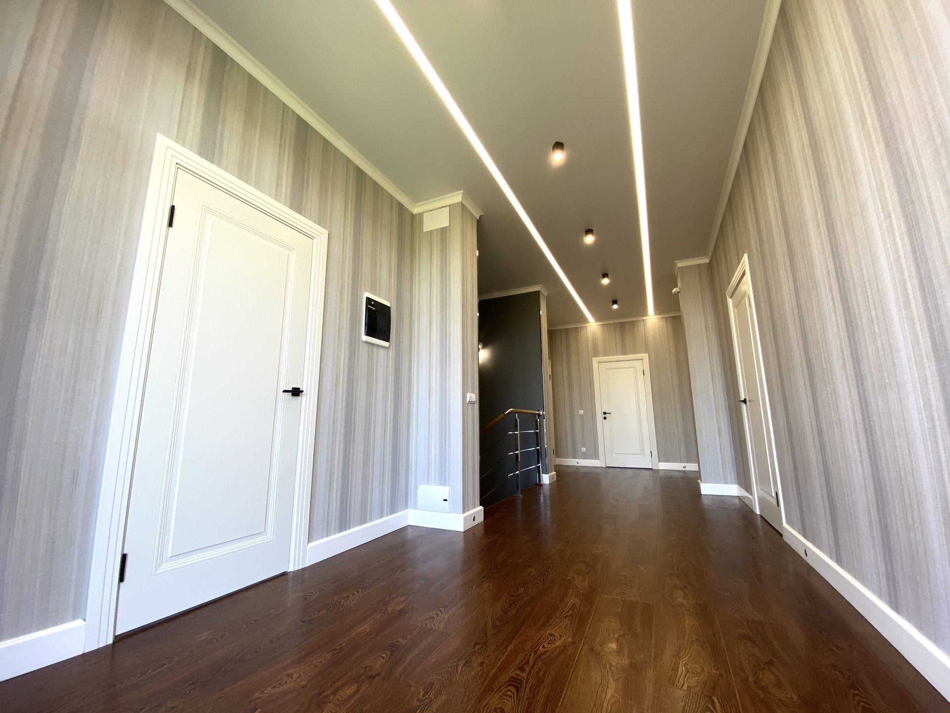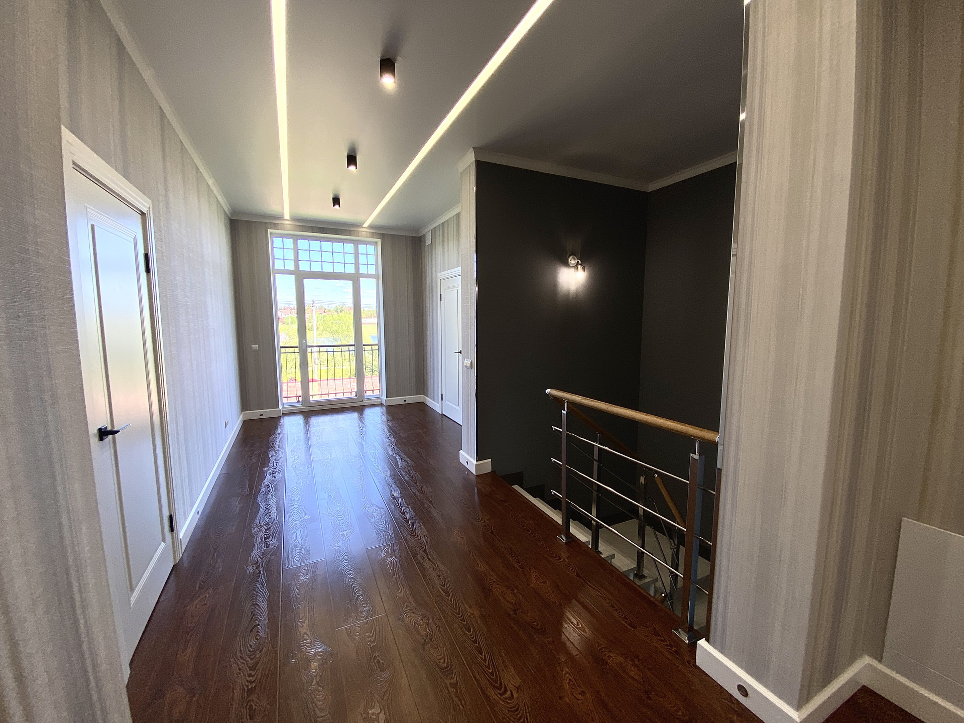 На 2 этаже две мастер-спальни (одна из них с выходом на балкон), детская, спальня с большой гардеробной, общий санузел, просторный коридор и балкон.
