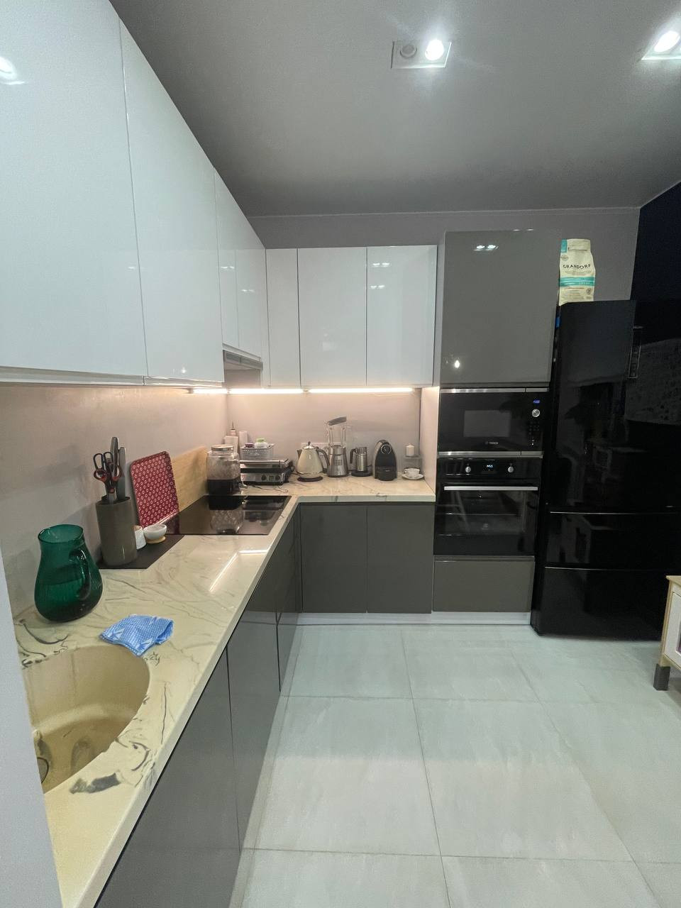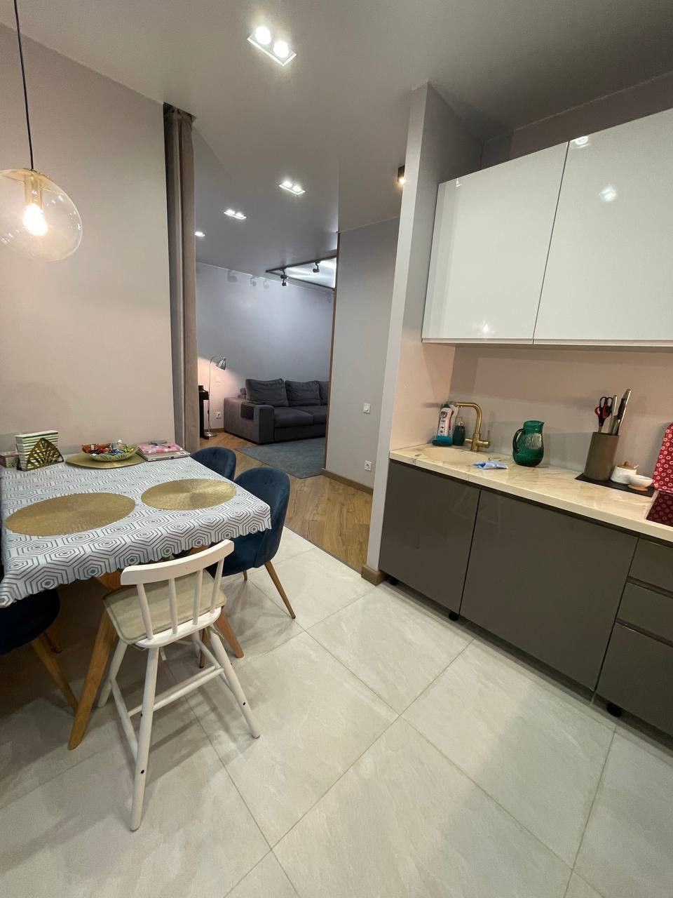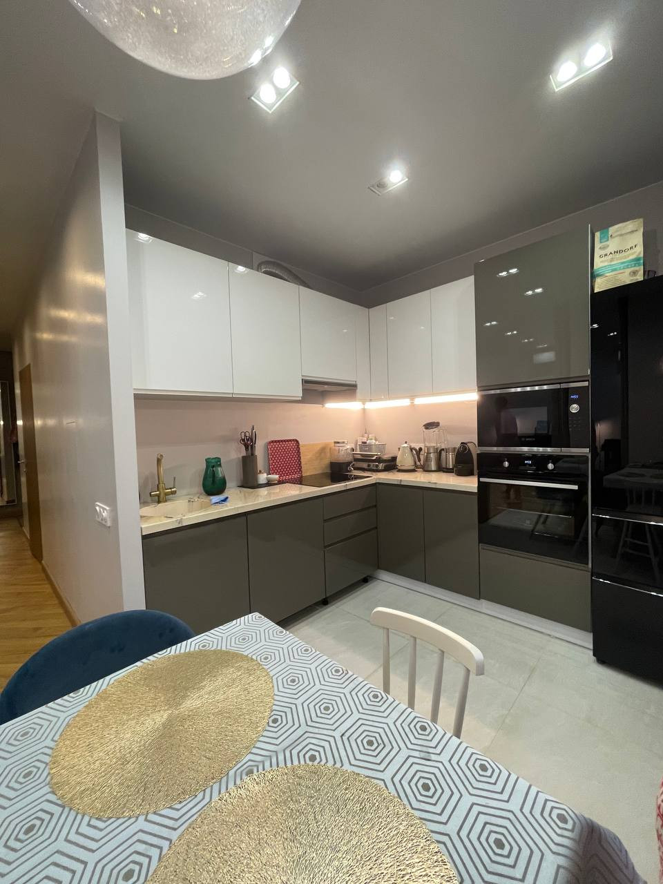 На полу лежит ламинат 33 категории качества.  На кухне установлен фильтр питьевой воды, есть посудомойка
