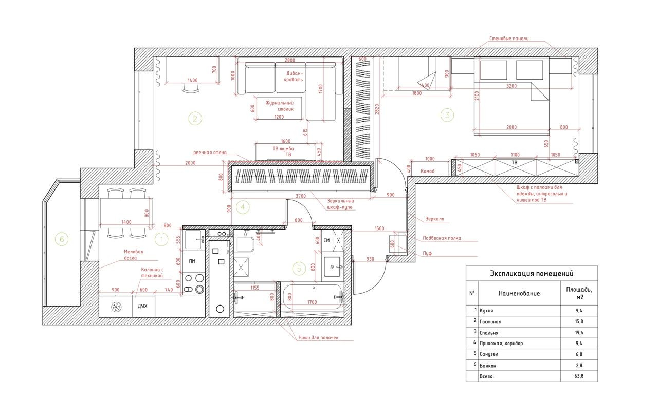 Общая площадь 61 м2