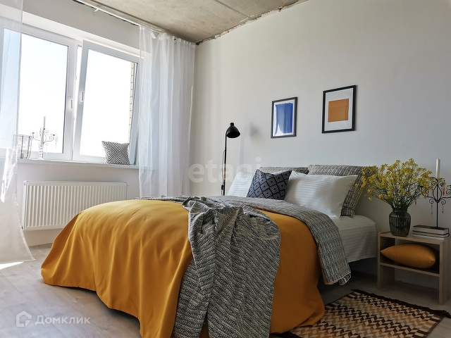 Просторная светлая комната площадью 20 м2 с потрясающим видом из окна позволяет организовать несколько функциональных зон. В нише можно расположить просторную гардеробную или поставить детскую кроватку. Есть место для рабочей зоны и зоны отдыха.
