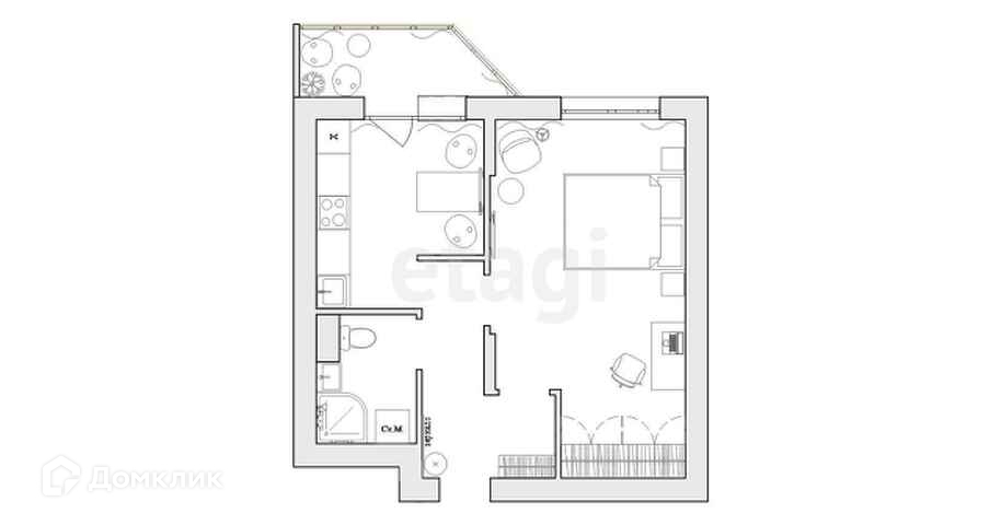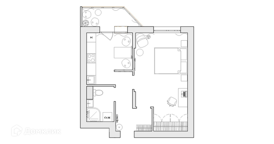 Квартира общей площадью 39,6 м2, не включая балкона, наполнена заливающим светом, воздухом и легкостью!