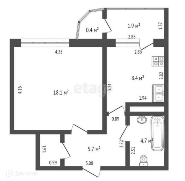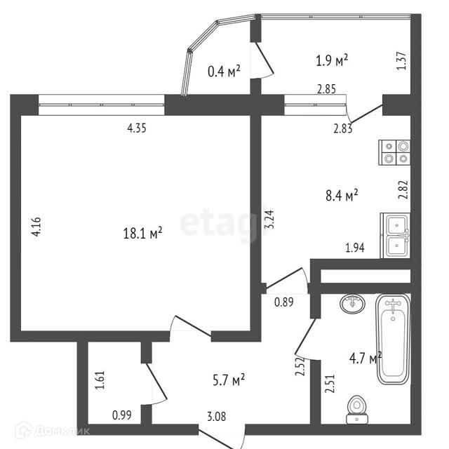 Балкон, лоджия 1 балкон
