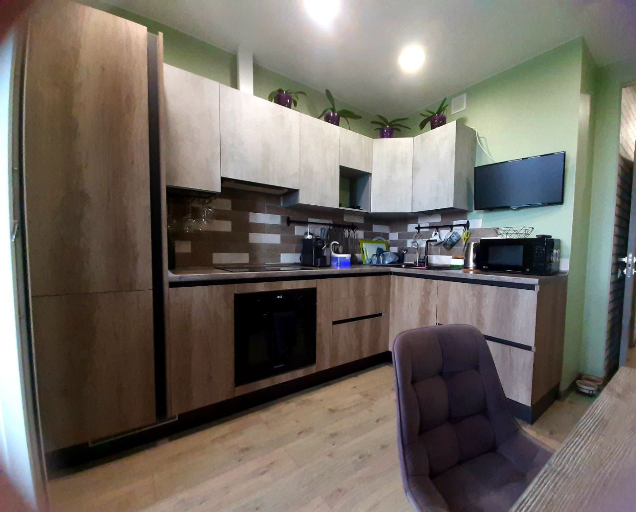 Бонусом остаются кухонный гарнитур и техника ( холодильник, духовой шкаф, плита)!