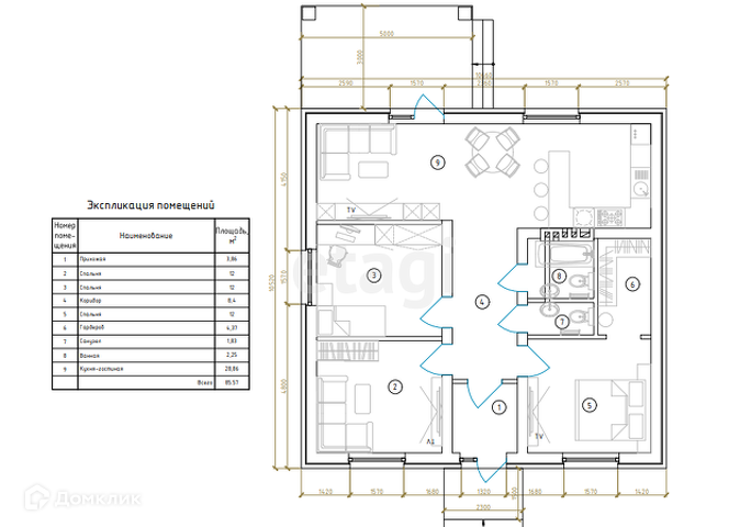 Общая площадь 90 м2