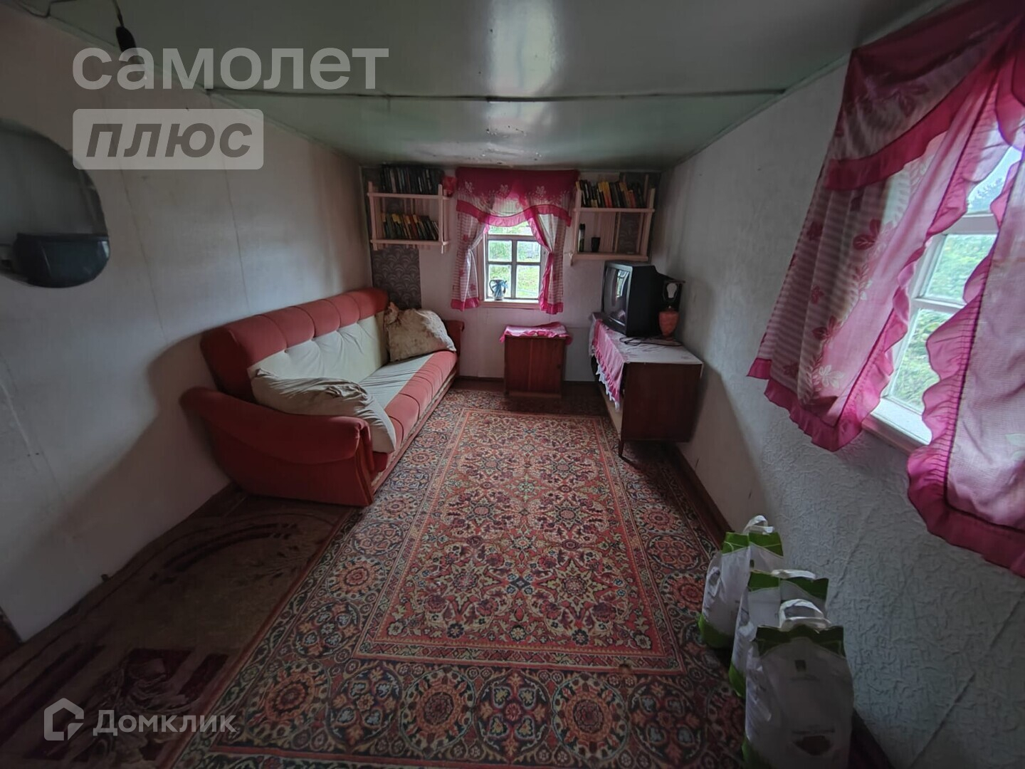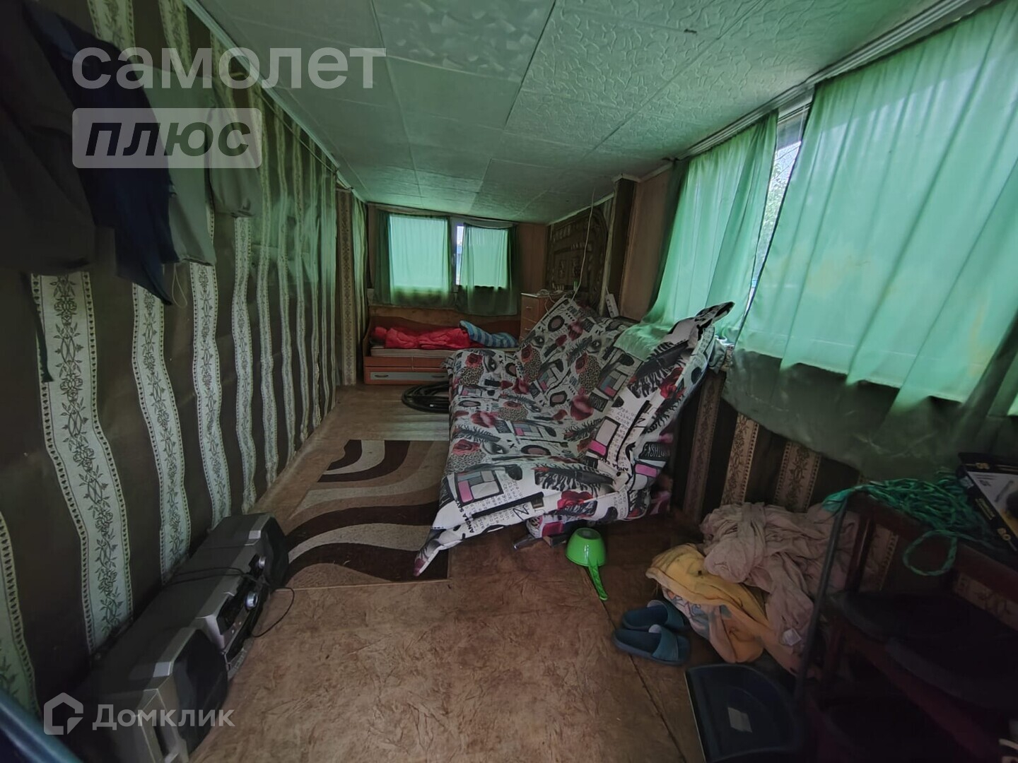 - в пристройке - диван, комод, односпальная кровать, зеркало.