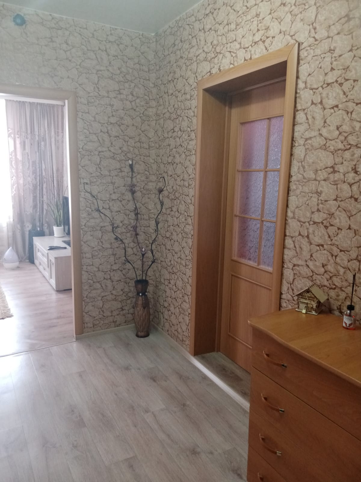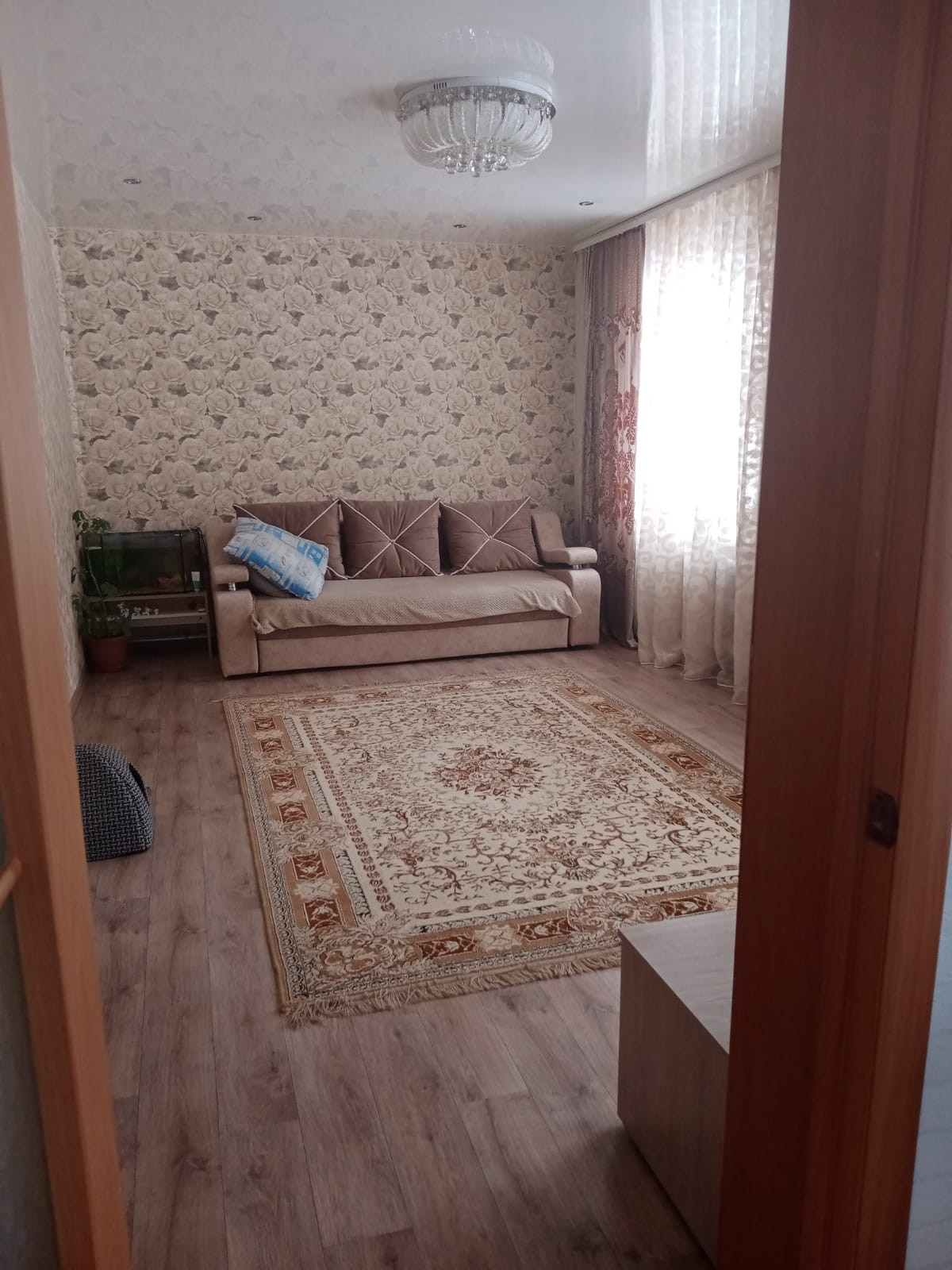 В хорошем состоянии, три комнаты + просторная кухня.