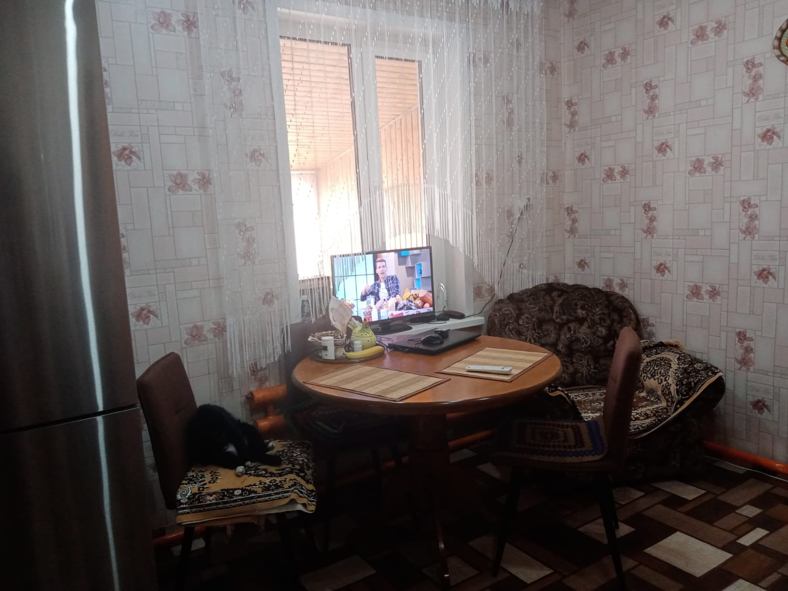 Окна ПВХ, натяжной потолок, на полу линолиум.