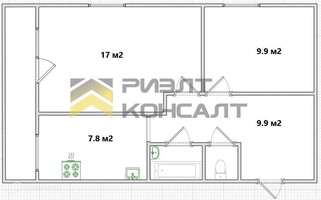 Жилая площадь 26.9 м2