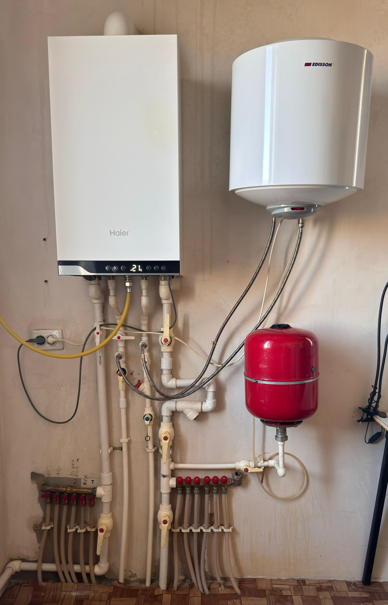 Материал стен: газоблок, обложен кирпичом, теплый пол.