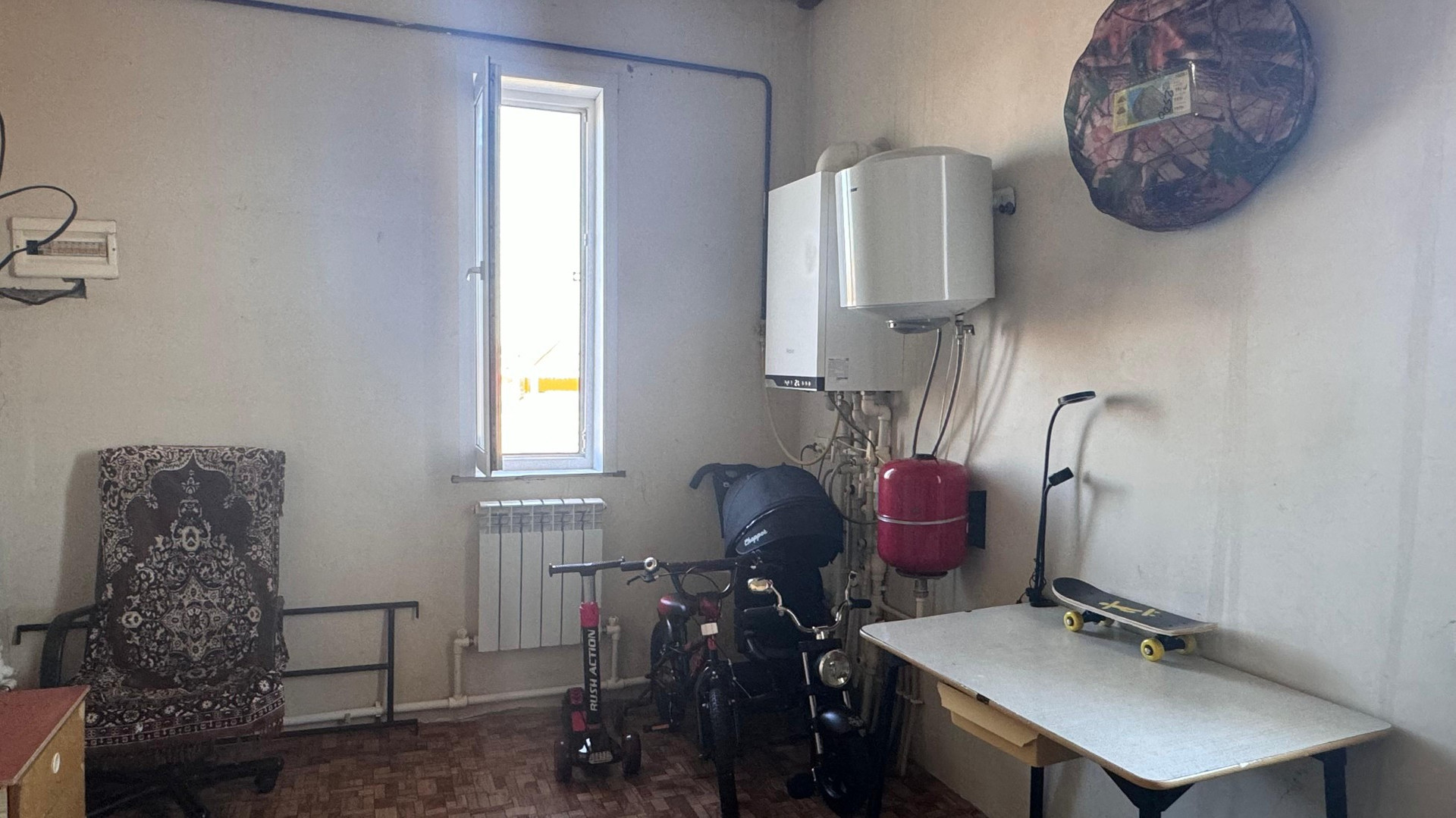 На первом этаже: кухня, зал, комната, санузел, котельная. (116 м²)