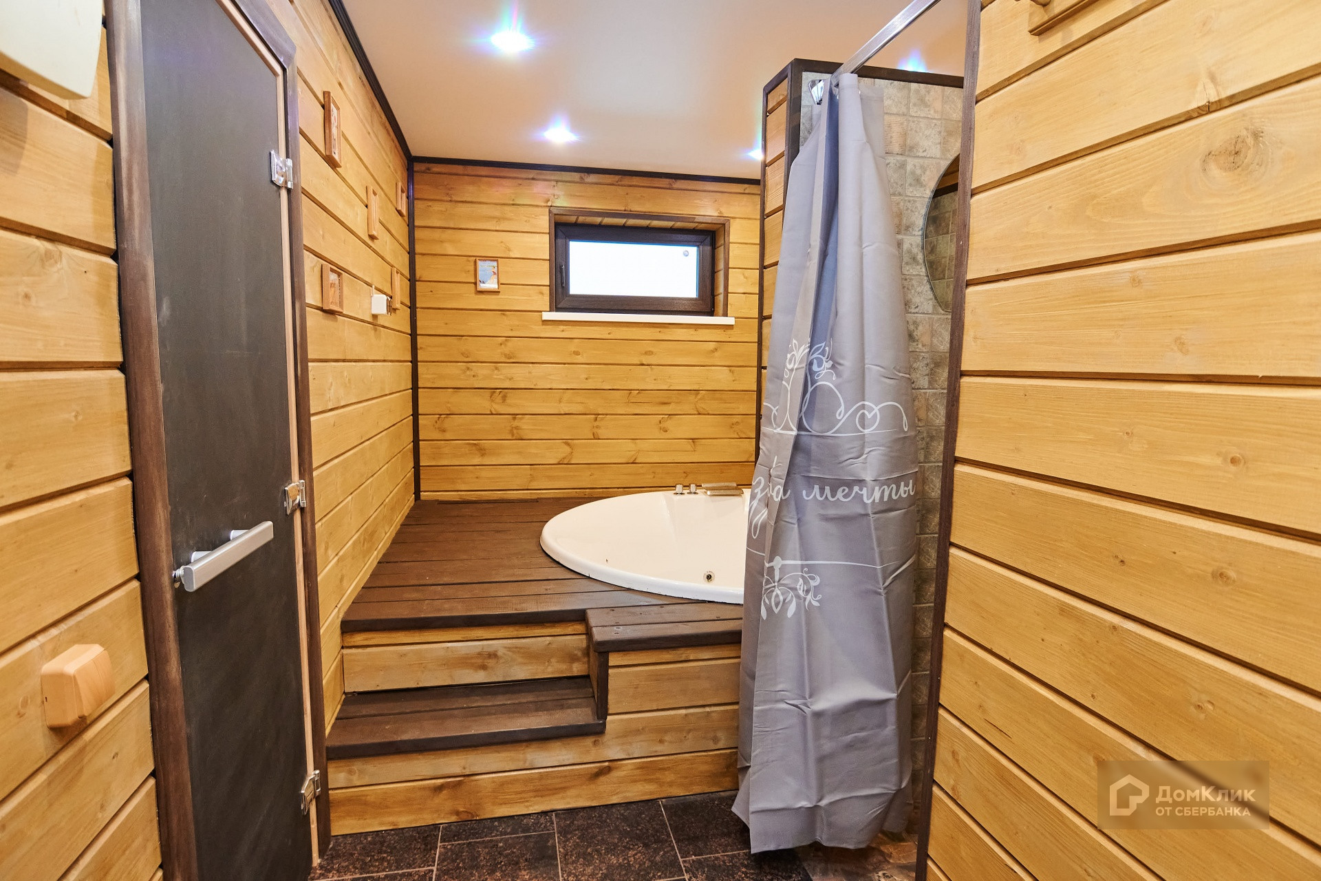Баня 8×8 с террасой 4х10. Кирпичная банно-отопительная печь с закрытой каменкой. Водяное отопление на электрокотле Эван 7,5 КВт. Большая парилка печкой Харви Сенатор Комби (с парогенератором) , гостиная с камином (24 м²), джакузи с душем, туалет, инженерный узел. На втором этаже огромная комната отдыха (44 м²) и большая кладовая (15м²). Закрытая терраса 40 м² с подготовкой под барбекю. Баня построена на ленточном фундаменте на плите. Брус 150х200 плюс 100 мм утеплителя. Зимой для обогрева хватает 2,5 Квт мощности электрокотла.