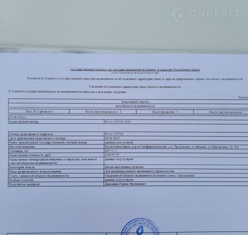 Срочно продам.собственик.4.5 сот 8,5 сот кад 90:12:170701:1542 Есть еще варианты по90:12:170701:1543 Айкавану. 90:12:170701:195