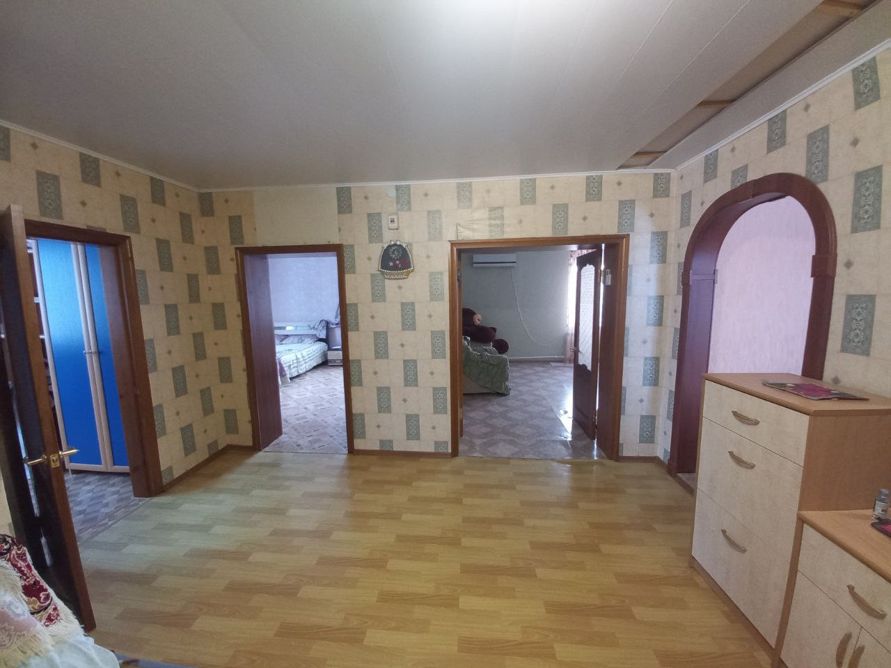 Просторный дом состоящий из: 2 прихожие, большая кухня-гостинная, 3 просторные спальни, зал, ванная комната, туалет раздельные.