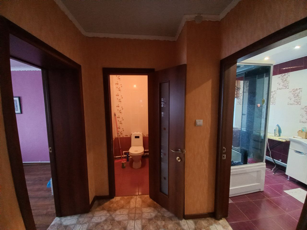 В прихожей, ванной, туалете и кухне теплый пол под кафелем.