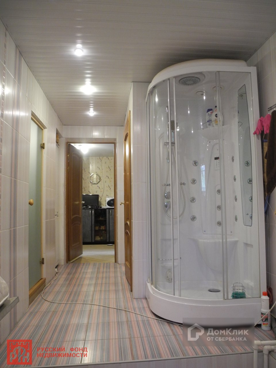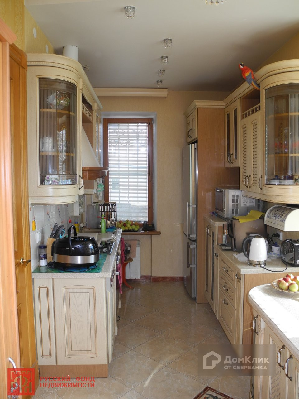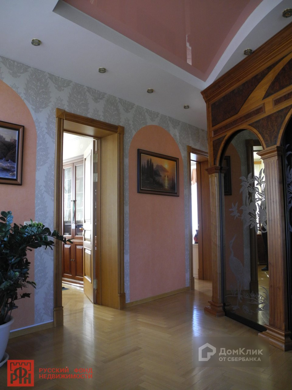 Полы - плитка и дубовый паркет. Потолки подвесные.