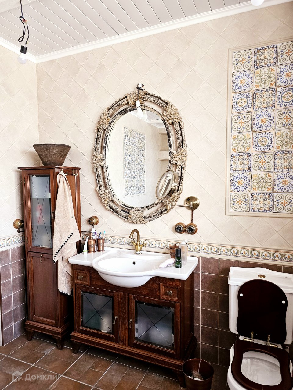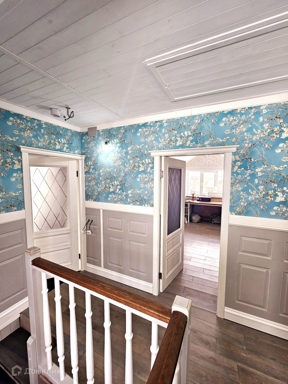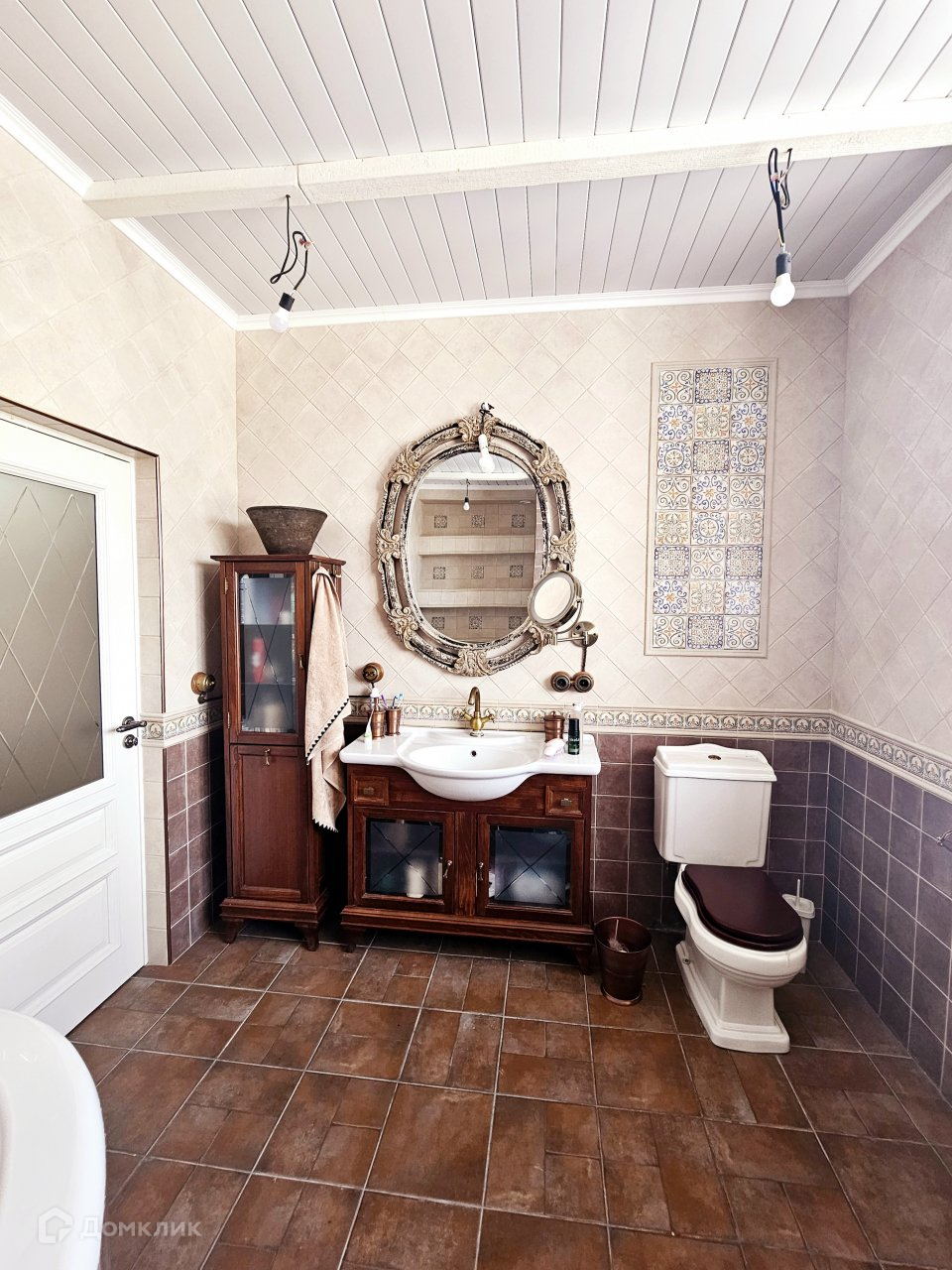 В доме 5-ть санузлов, высота потолков 3,6 м, толщина стен 60 см, крыша утеплена- 40 см, пол- натуральное дерево.