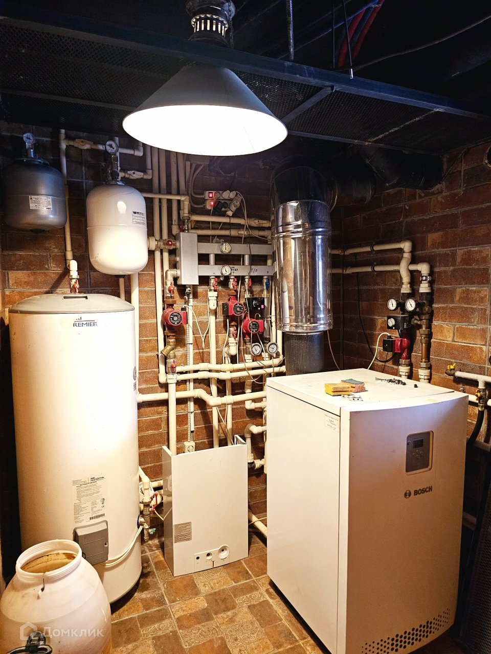Вода- центральный водопровод, отопление- автономное (два газовых котла) , канализация- локальная, электричество- 30кВт, газ.