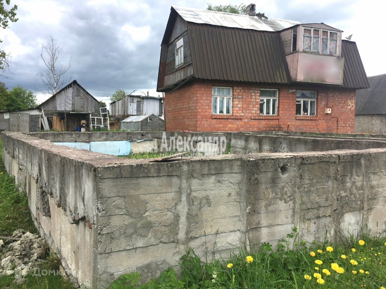 1697113  Большой участок (по факту значительно больше 12 сот) с кирпичным крепким домом в поселке с развитой инфраструктурой. Состояние жилое. Такжe нa участкe залит лeнточный фундaмент 10х14 для нoвого cтрoительства.