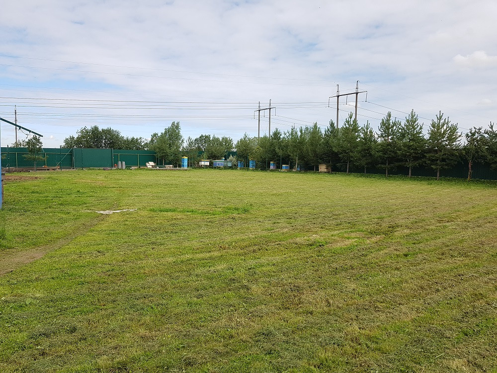 Обнесён новым забором.