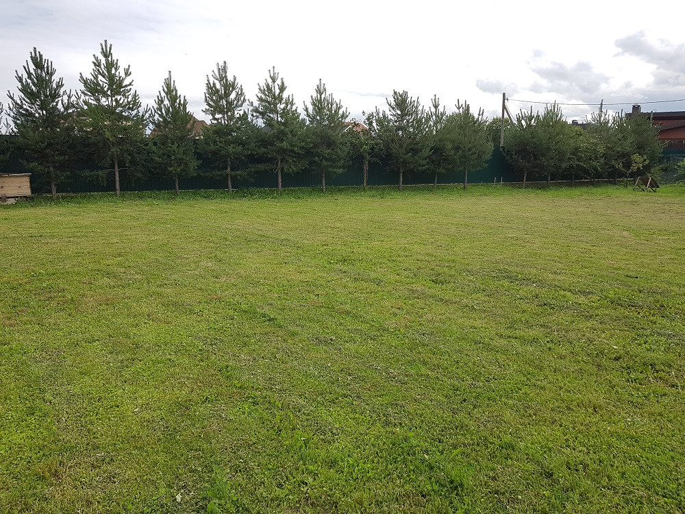 Продаётся сухой ровный участок (ИЖС), качественный газон, по периметру высажены хвойные деревья.