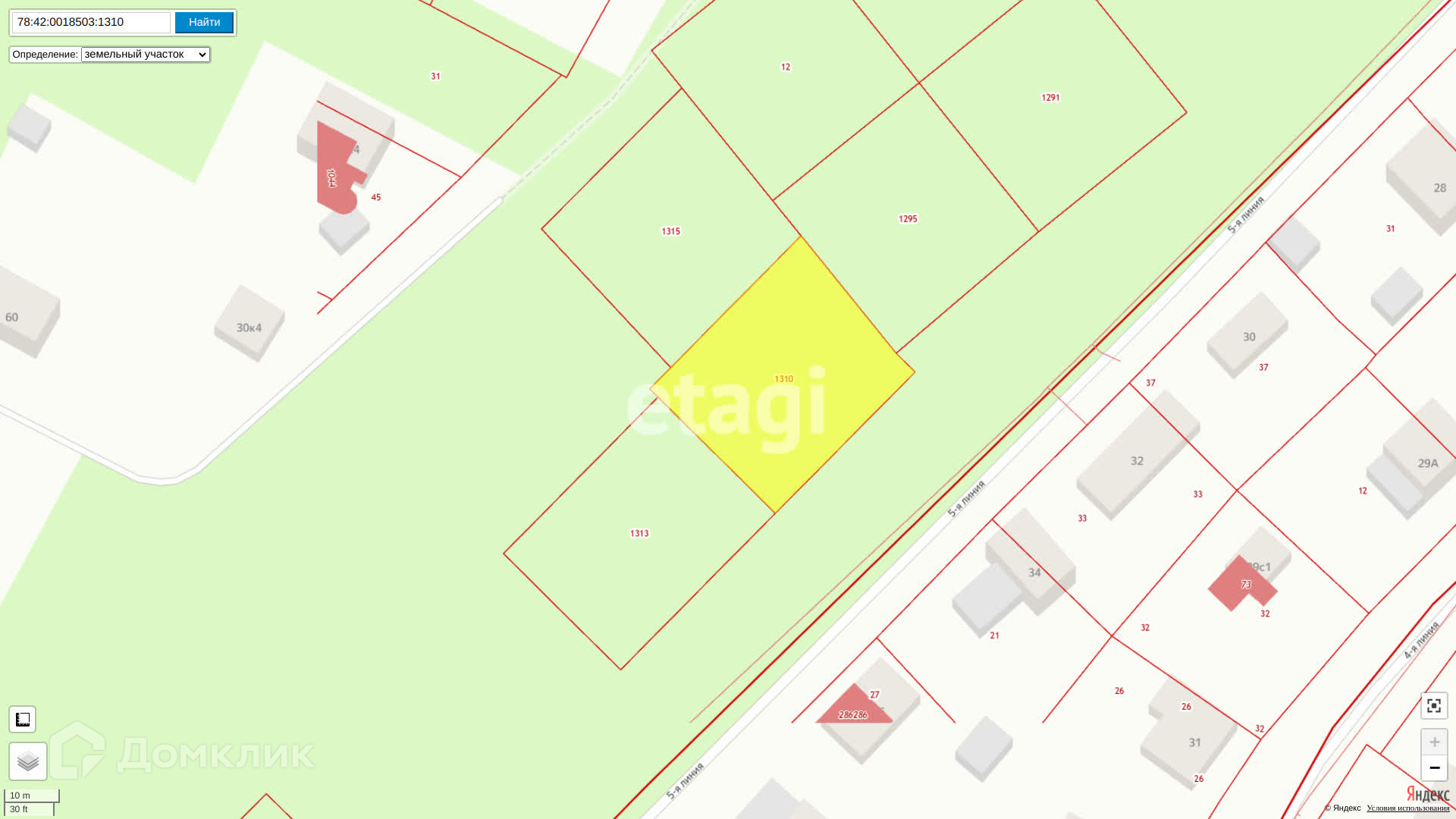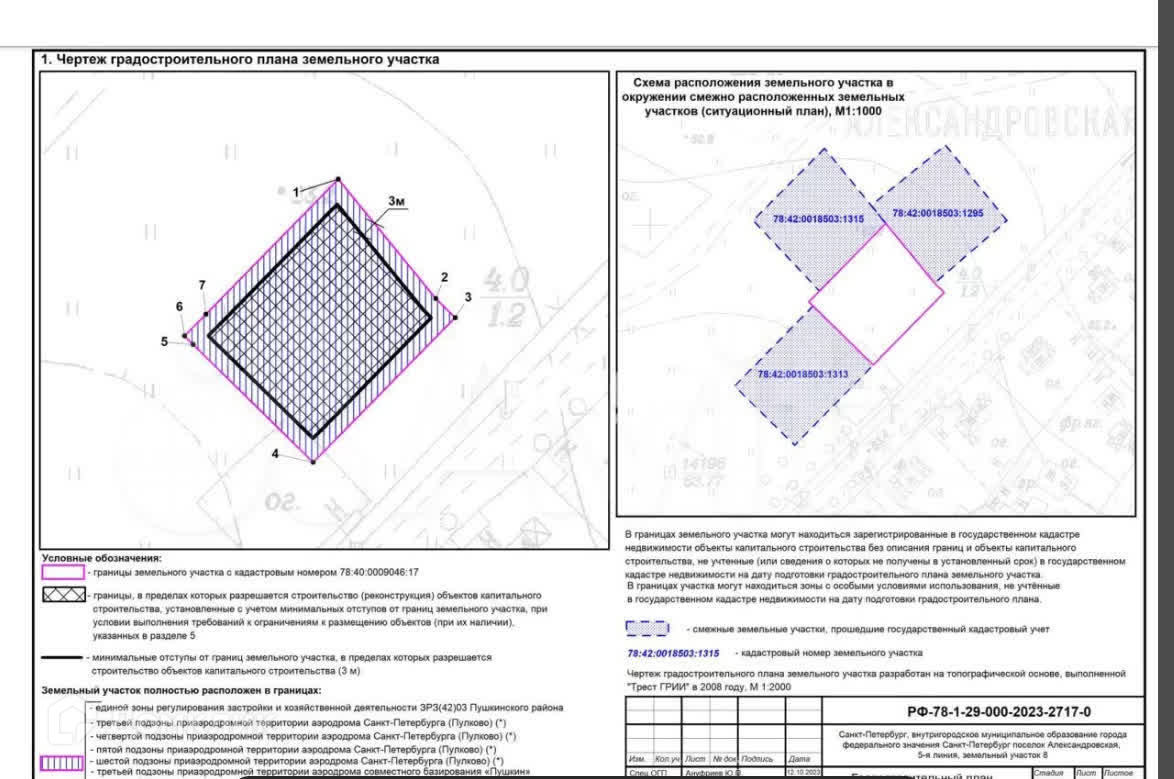 Отличный земельный участок площадью 1200 кв.м. в 10 минутах от КАД с кадастровым номером 310, расположенный по адресу: Санкт-Петербург, посёлок Александровская, 5-я линия, земельный участок 8.