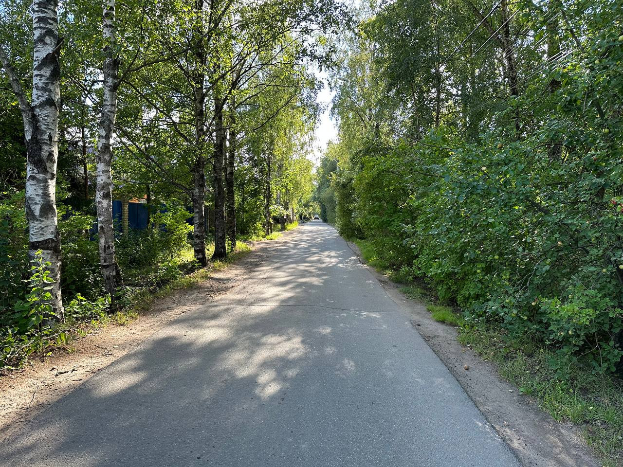 Участок ровный, сухой, без уклона, прямоугольной формы с небольшим количеством растительности. Асфальт (улица 5-я Линия) проходит вдоль длинной части участка. До асфальта имеется неразграниченная часть (20 метров до асфальта), которую, при необходимости, можно прирезать к участку, что даст около 5 соток дополнительно, либо использовать в качестве парковки автомобилей.