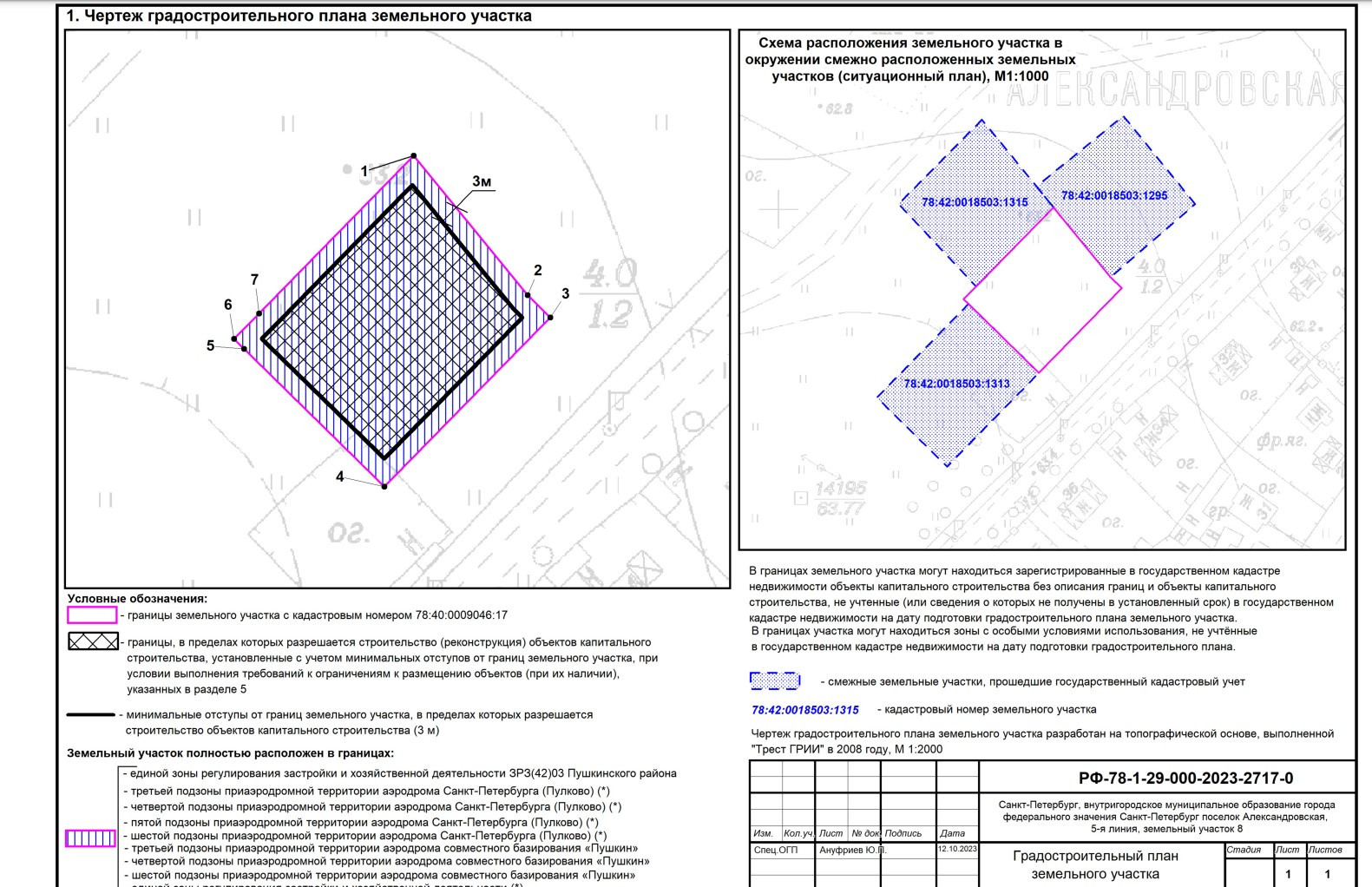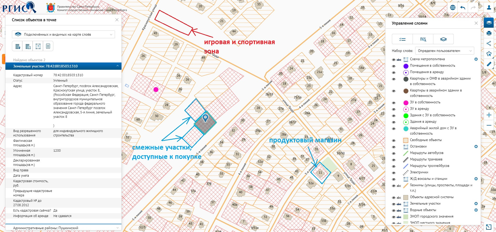 Отличный земельный участок площадью 1200 кв.м. в 10 минутах от КАД с кадастровым номером 78:42:0018503:1315, расположенный по адресу: Санкт-Петербург, посёлок Александровская, 5-я линия, земельный участок 9.