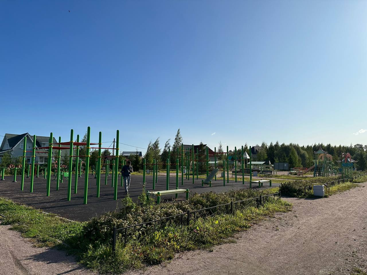 Участок расположен в отдаленности от оживленных магистралей (Киевское и Волхонское шоссе). В 150 метрах от участка расположены общественная детская площадка, тренажерная зона и огороженные поля для игры в футбол и теннис. В округе у соседей уже всё давно построено, не придется жить на стройке. Тихое, уютное, зеленое, идеальное место для жизни.