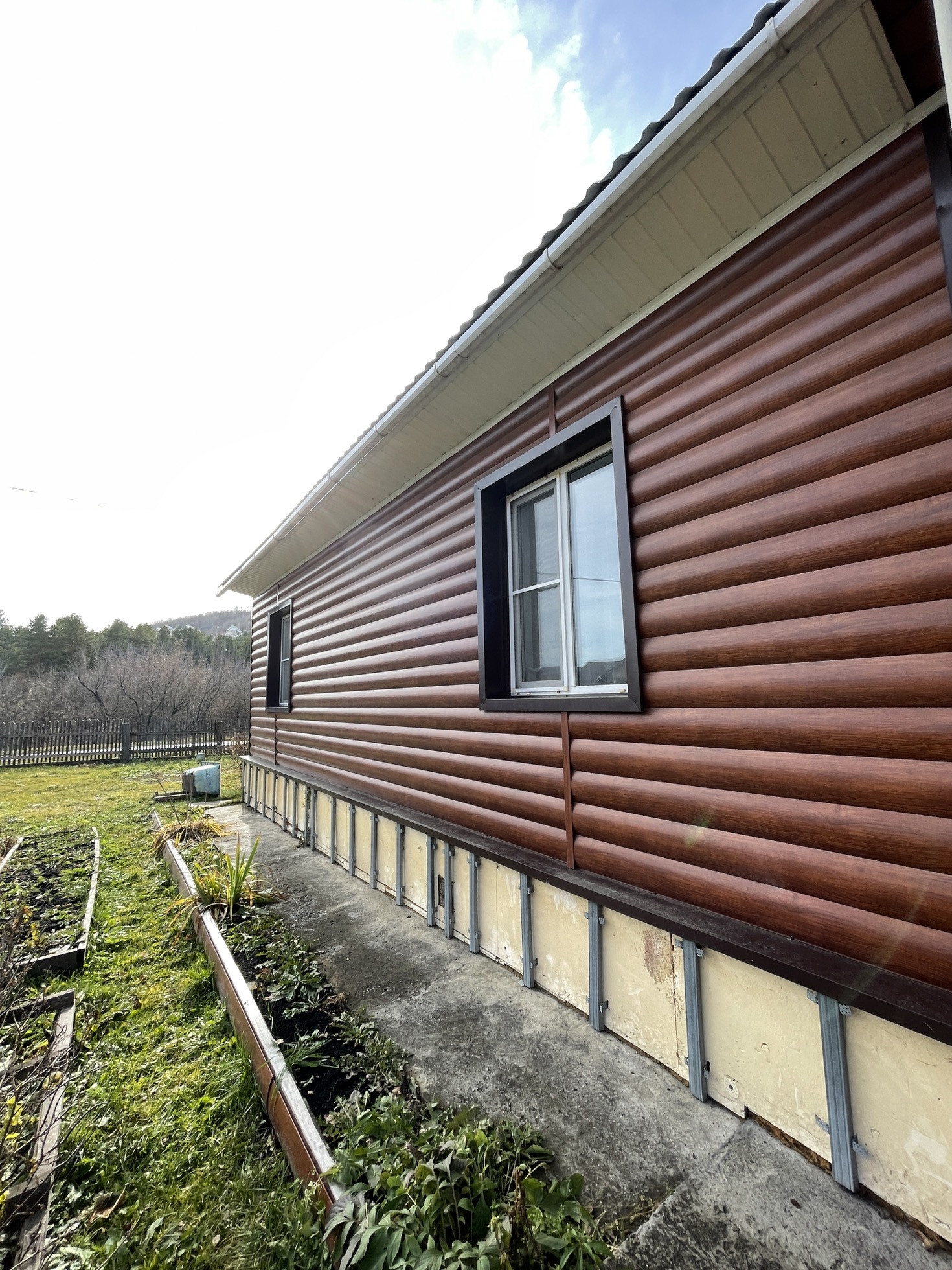 Дом утеплён и обшит металлическим сайдингом.