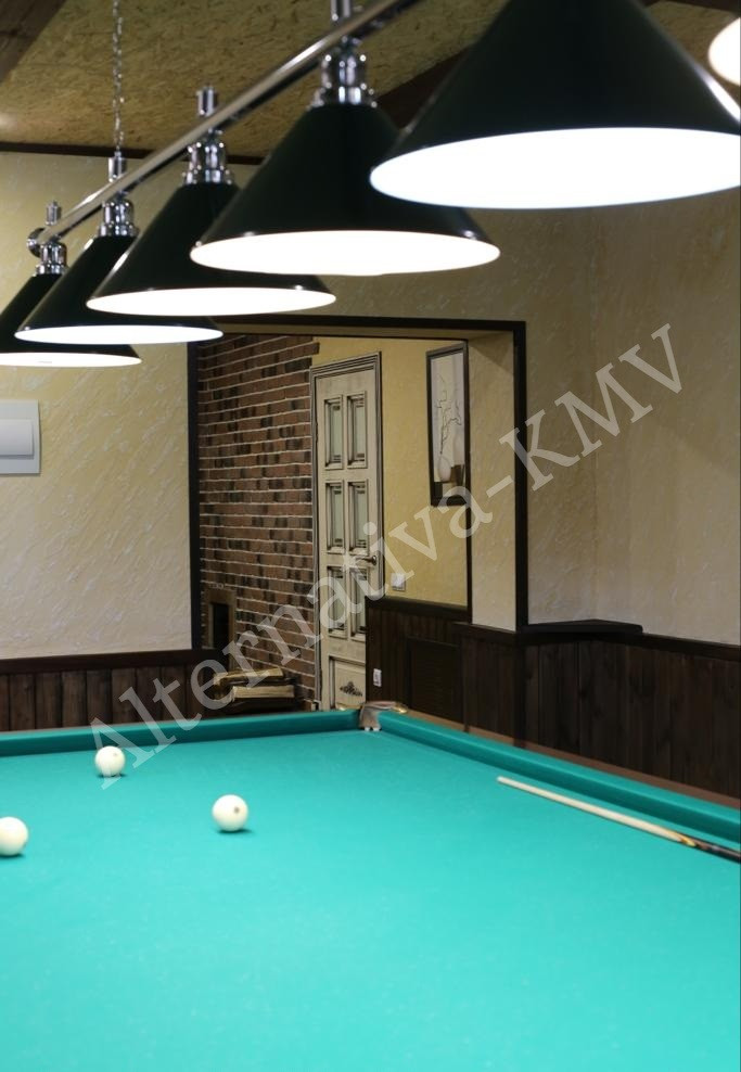На цокольном этаже бильярдная , баня , комната отдыха , душевые , санузел. Отдельный вход.
