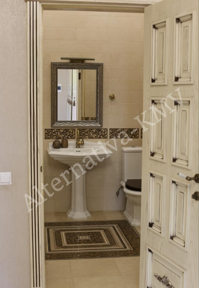 В доме 3 этажа. 4 санузла ,5 спален, кухня , гостиная.