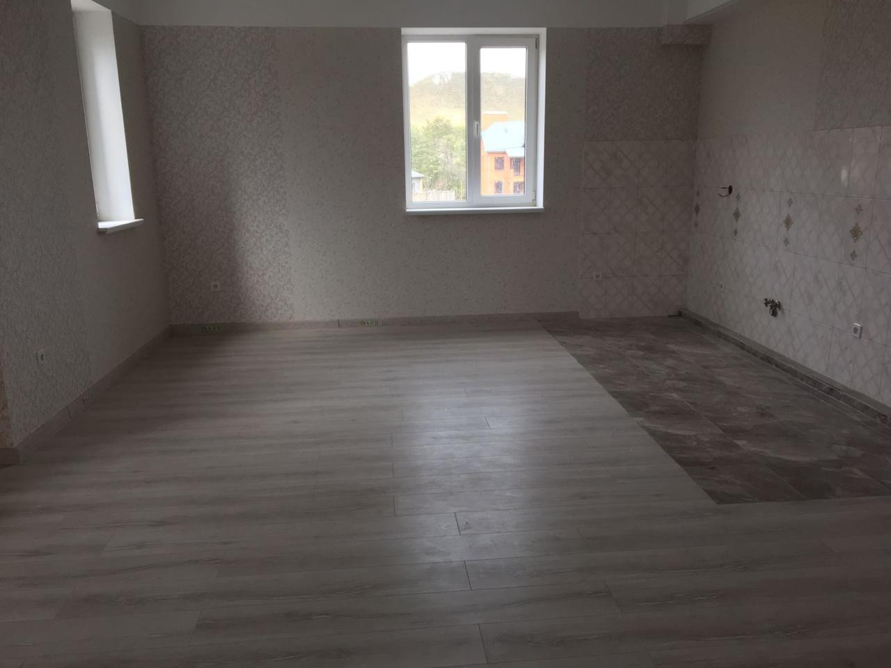 1 этаж в доме жилой - 2 комнаты, кухня-гостиная , сан узел и прихожая.