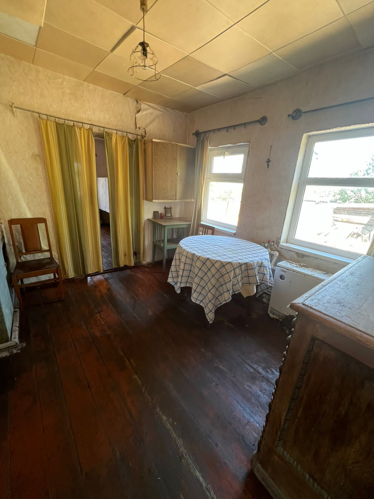 Дом газифицирован, электричество, центральный водопровод, подлежит ремонту.