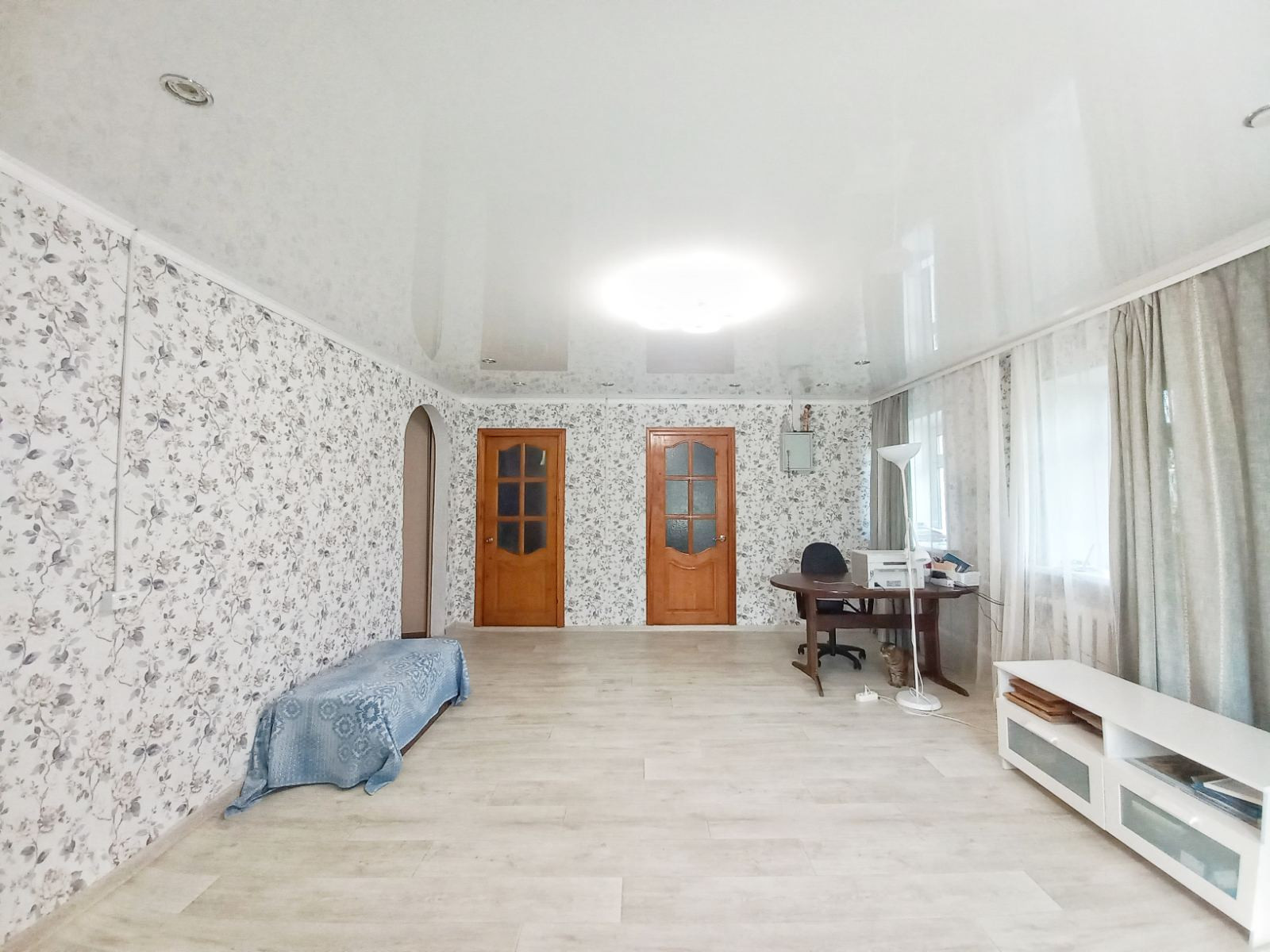 В доме сделан косметический ремонт, состоит из двух спальных комнат, огромный зал, кухня.