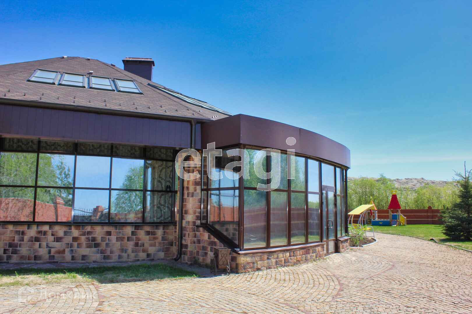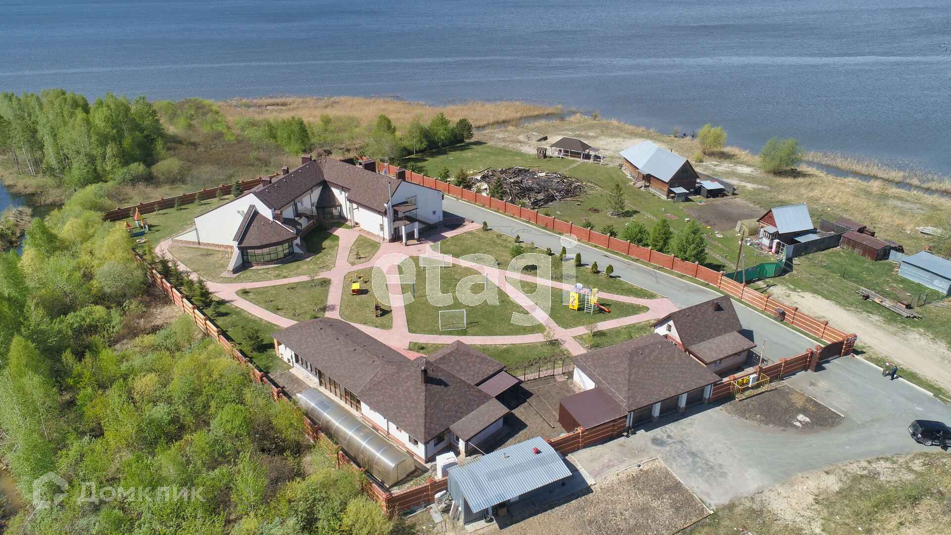Большой загородный дом на живописном южном берегу Андреевского озера. Полностью готов для проживания, в 20 км от города, расположен на земельном участке 60 соток. На территории расположены: баня, бассейн, гараж, теплица, небольшой огород, детский городок, спортивная зона, дом охраны. По периметру капитальный кирпичный забор. Внутренняя отделка в классическом стиле, при ремонте использованы дорогостоящие и качественные материалы. Предусмотрены и оборудованы помещения различного назначения, которые обеспечивают свободное проживание всех членов семьи , а также приема гостей. Два этажа, на первом этаже: кухня, зал, хамам, гараж. На втором этаже спальные комнаты, каждая с индивидуальным санузлом, холл, бильярдная и полноценный цокольный этаж.