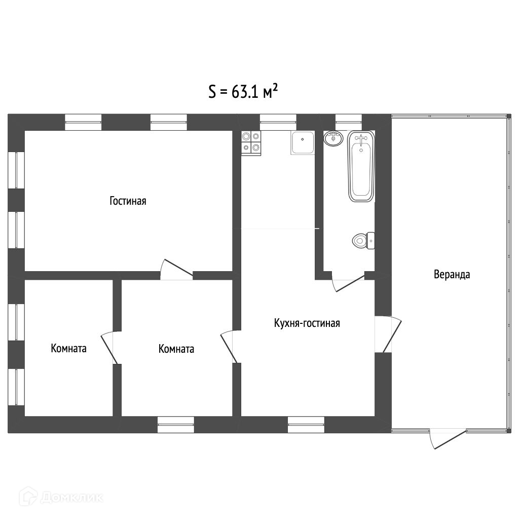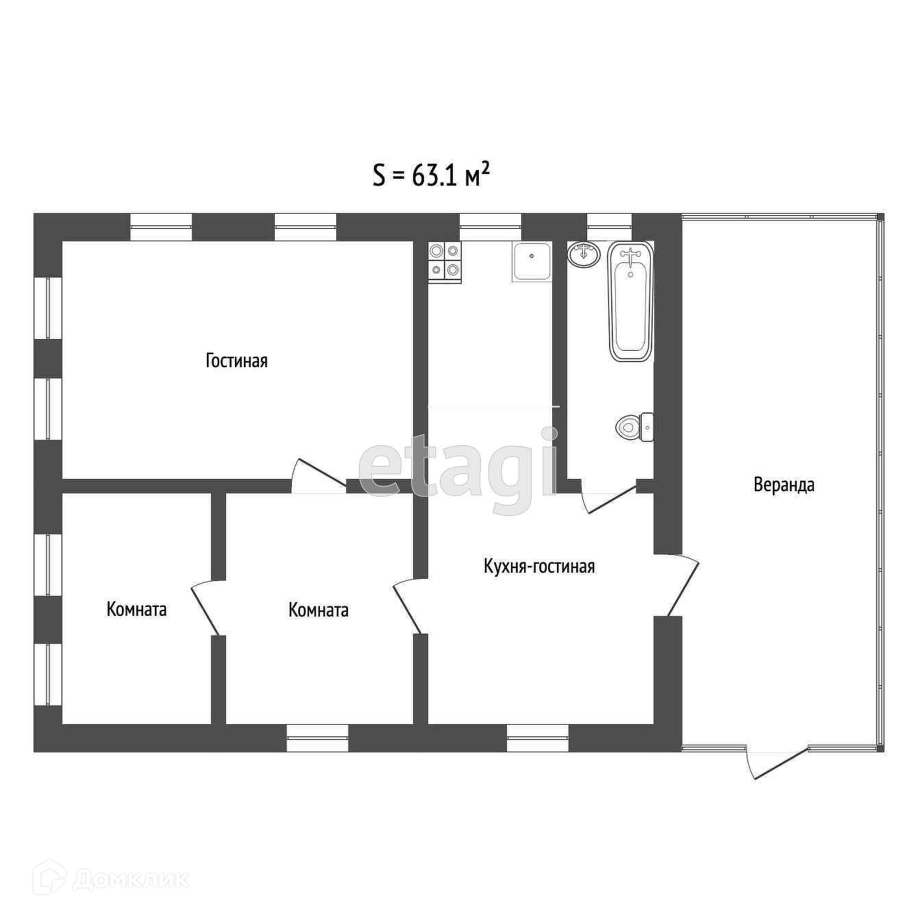 Общая площадь 63.1 м2