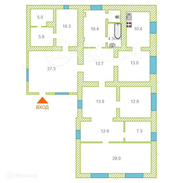 Общая площадь 149.7 м2